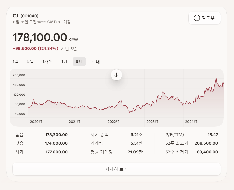 - CJ ENM, CJ CGV: 2024년부터 본격적인 턴어라운드 기대감이 반영되며 투자자 신뢰 회복.