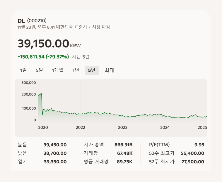 주식 투자 관점에서 DL은 중장기적 관점에서 매력적인 종목으로 평가된다. 안정적인 수주 잔고, 현금 창출 능력, 글로벌 확장 전략은 투자자에게 신뢰를 제공한다.