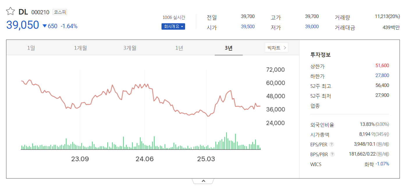 DL그룹은 안정성과 성장성을 동시에 갖춘 투자처로 평가됩니다. 건설업 특성상 경기 변동에 영향을 받지만, 해외 플랜트와 인프라 사업 확대는 안정적인 매출원을 제공할 수 있습니다. 또한, 석유화학 부문은 글로벌 친환경 트렌드와 맞물려 장기 성장 가능성이 높습니다.