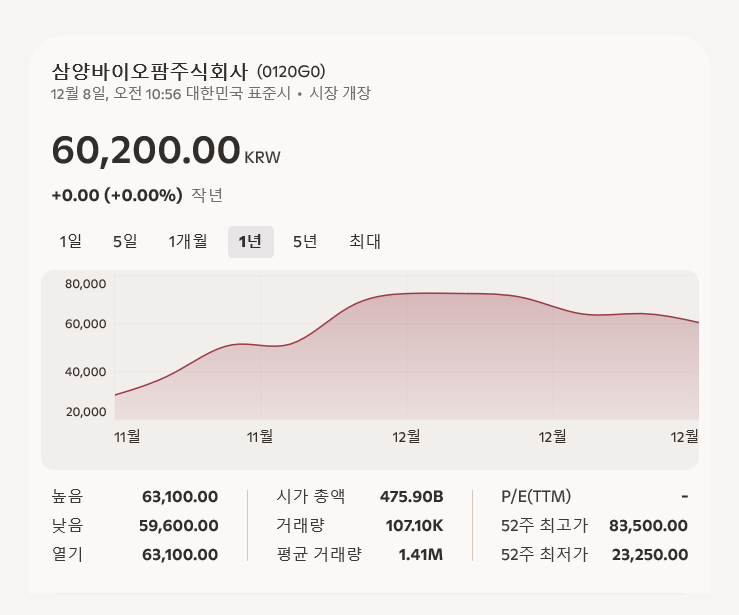 삼양바이오팜은 2025년 11월 인적분할 후 코스피에 재상장되며 상장 첫날 상한가를 기록했고, 이후에도 강한 상승세를 이어갔다.